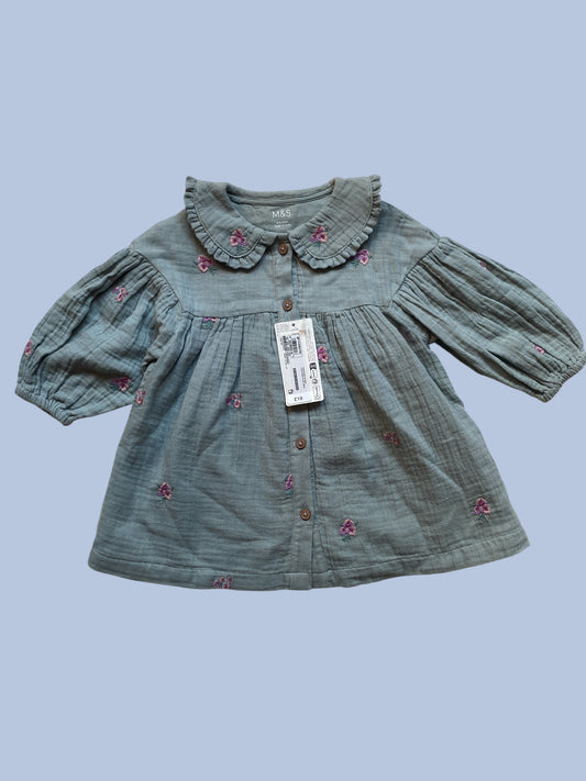 Mint muslin cotton dress 6-24m | Marks and Spencer