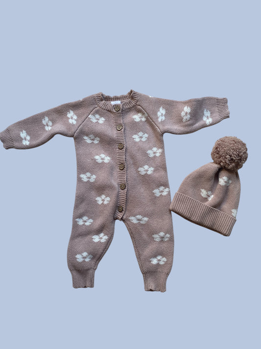 Knit cotton onepiece + hat 6-12m | Jamie Kay