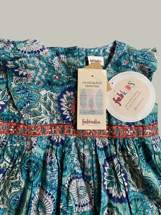 Hand block printed cotton dress 6-12m | Fabindia