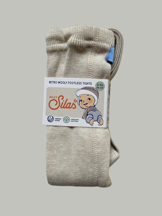 Retro wool/organic cotton footless tights with braces, cream, 3-4Y | Silly Silas