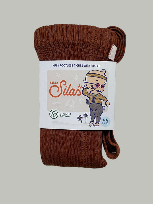 Hippy footless ribbed tights with braces, organic cotton, 2-3Y | Silly Silas