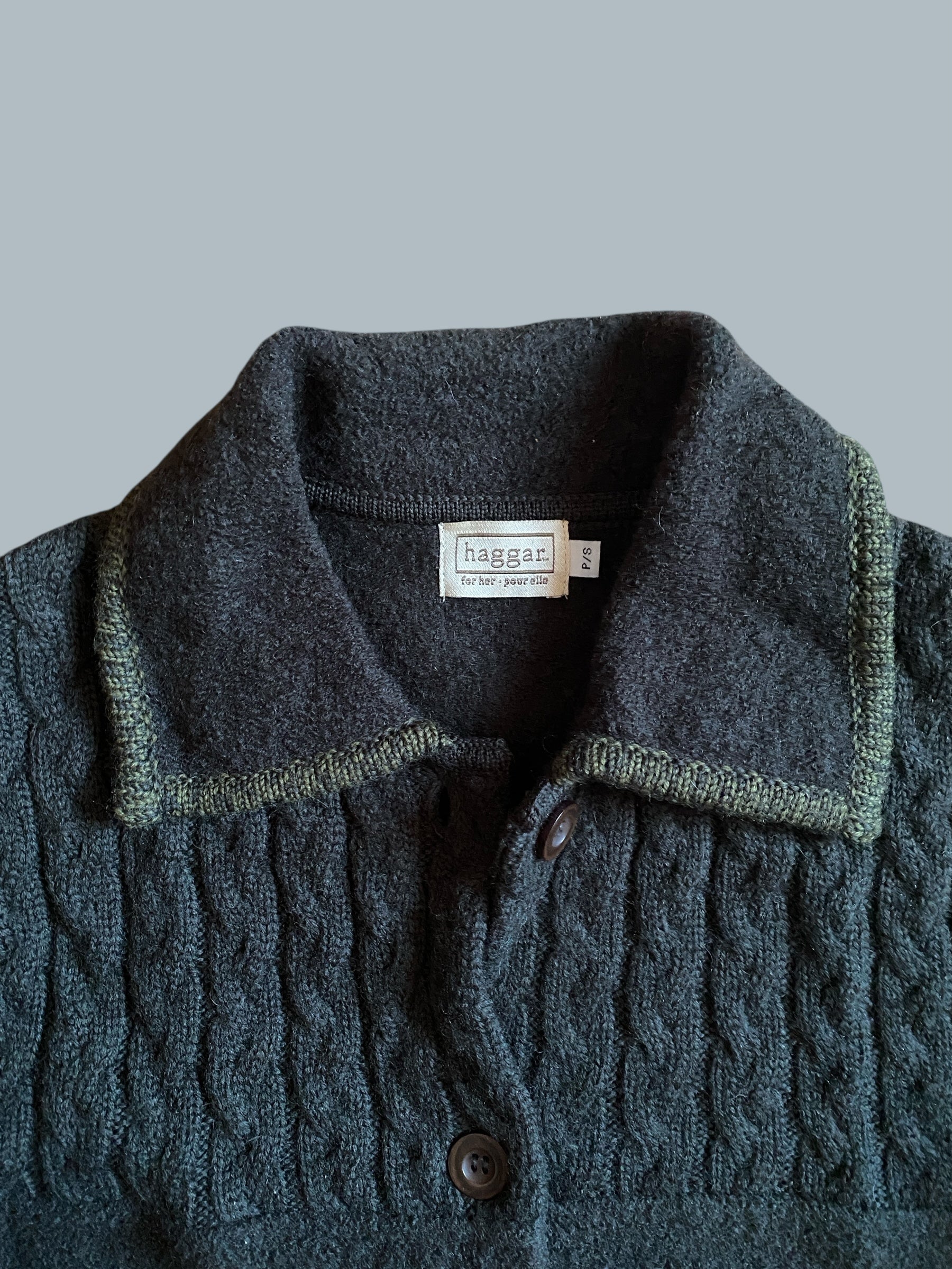 Dark green wool button up cardigan women's small | Haggar