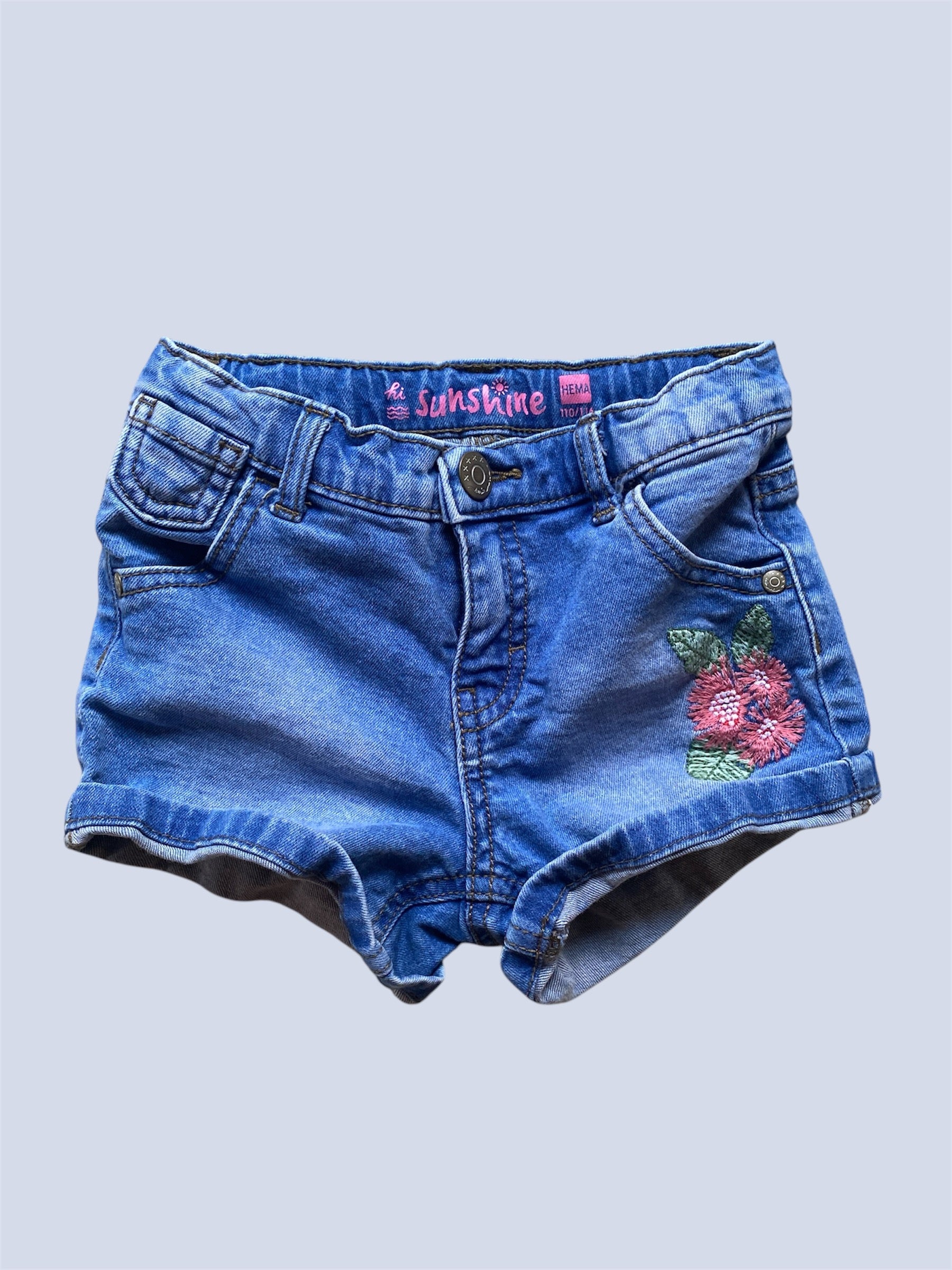 Jean shorts with flower embroidery 4Y/110 | Hema