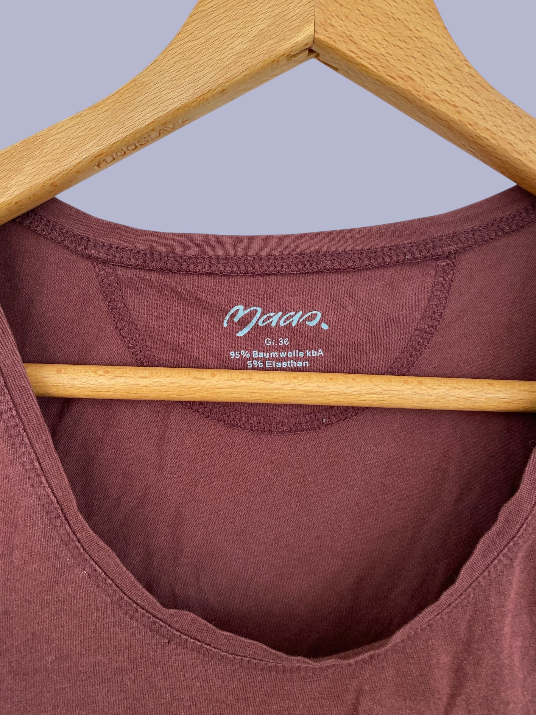 Organic cotton burgundy t-shirt women's small (36 EU)| Maas